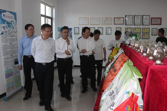 观摩团首先听取了京山市委副书记、政法委书记张少红对农谷地奥投资建设的“农谷地奥循环农业与畜禽粪污综合利用项目”的介绍,该项目主要有三大特点:一是推进畜禽粪污综合利用,二是打造水肥一体化循环模式,三是发展万亩订单有机农业。随后观摩团来到公司产品展示厅,陈勇总经理对农谷地奥取得的相关资质及开发生产的10大有机肥系列产品向观摩团成员进行了详细介绍。